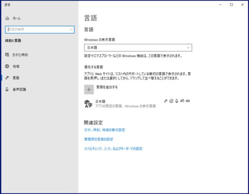 Java から log4j でログ流してたら日本語が全部 ? になったのでなんでや文字化けかいな!となるなどした。 デスクトップなど GUI の表示言語 スタートメニューから language と入力して開ける言語のページから、日本語を追加して他の言語を削除します。 削除…